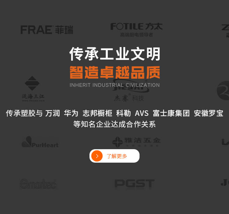 東莞傳承塑膠電子有限公司創立于2008年,位于世界制造業名城廣東省東莞市。以傳承工業文明 ,智造卓越品質為已任。經過十余年發展沉淀致力于打造為塑膠標準件行業的優秀標桿企業。現有職員50余人,業務遍及60多個國家和地區,服務多家知名企業,如:科勒華為、歐司朗 、方太、中國建筑工程公司、AVS等。 公司主營產品有塑料膨脹管,塑料螺絲保護帽,配線器材等類產品。經過十余年的研發創新與管理實踐,在渠道供應鏈,產品設計,生產管理方面具備較高專業的技能及大客戶服務能力。截至2020年底,累計申請有產品專利三十余項,能根據客戶要求開發模具及定做非標產品,產品符合環保認證,UL阻燃認證,抗老化UV認證等。 公司目前已成為國內外多家知名企業的長期合作伙伴,我們秉承“客戶第一,誠信 ,創新,合作共贏”的經營理念,愿與您攜手共同打造更加優質的產品與服務。